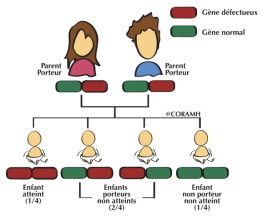 Si la personne hérite d’une seule copie défectueuse et que l’autre est normale, la copie normale va compenser le défaut de la copie anormale, dans la plupart des cas : ces personnes sont appelées « porteurs sains ». Ils ne sont pas malades mais peuvent transmettre la maladie à leurs enfants....